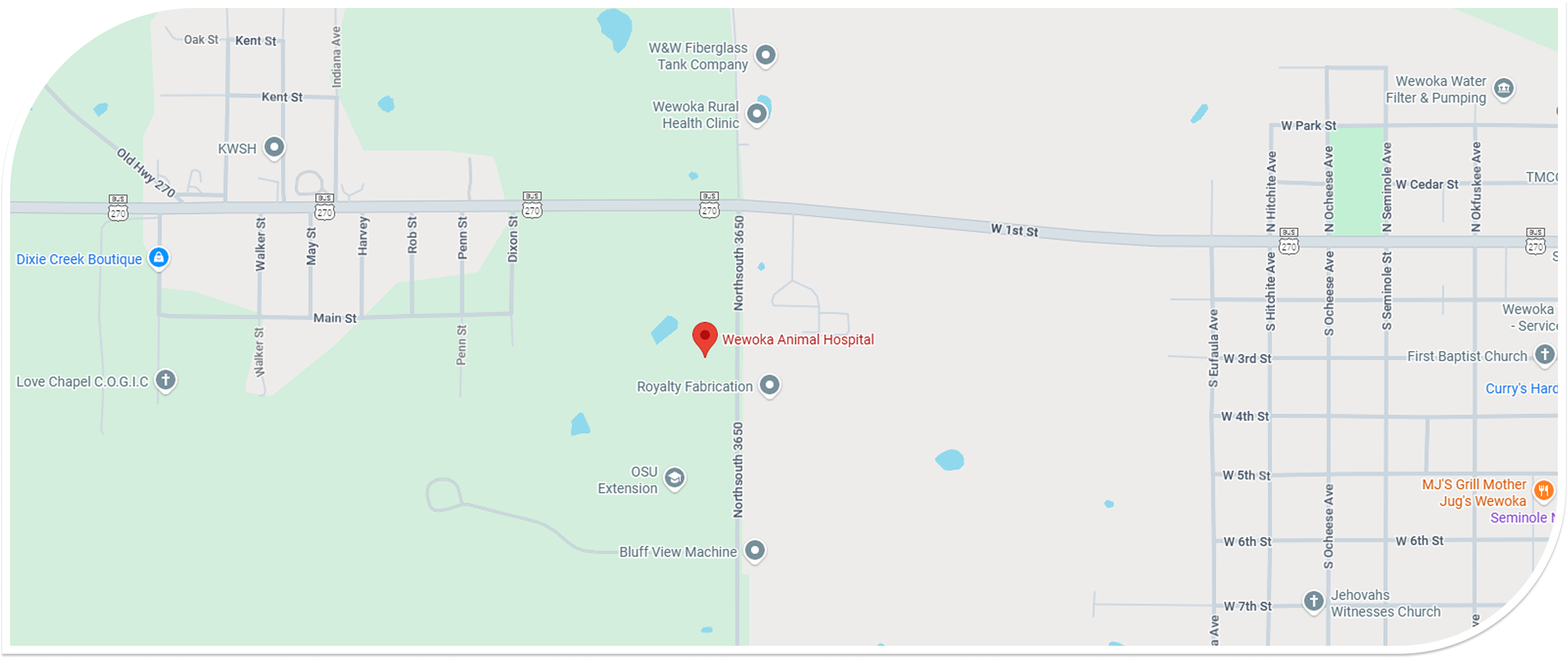At Wewoka Animal Hospital, our skilled veterinarians and caring staff are dedicated to your pet’s health and happiness. We look forward to meeting you and your furry family! As a trusted pet hospital, we also offer a full range of veterinary services to keep your pets healthy and thriving